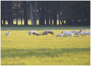 Jste-li nadosah, narazíte na vysokou ohradu, kterou ze severní strany zdvojuje koryto řeky Doubravy, z jižní Mlýnský potok neboli náhon. A nikde žádný volný vstup... Pročpak taková bezpečnost? Pročpak všechna ta opatření? Za plotem se totiž ukrývá živý poklad celého světa - stádo bílých jelenů, čítající zhruba 130 kusů.