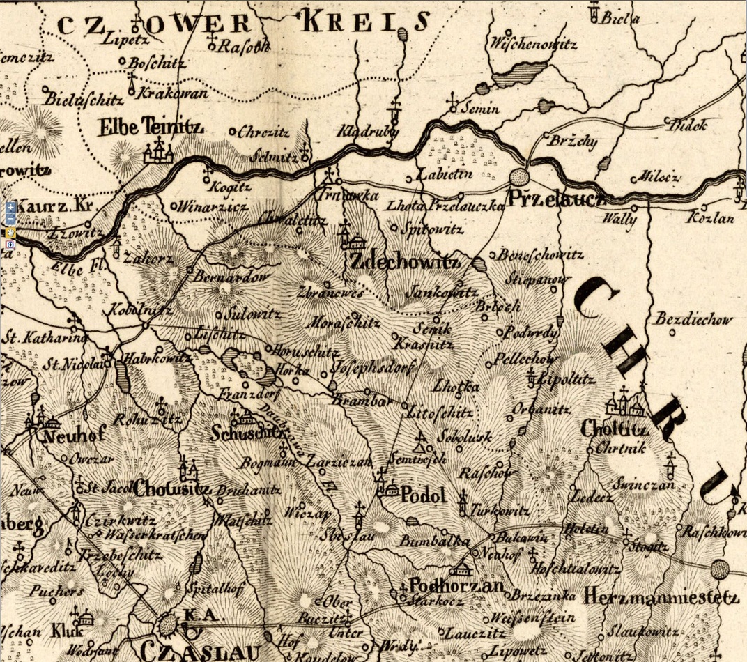Mapa okolí Litošic z roku 1833